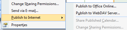 Now let’s go the other way. How can a family member using Google Calendar subscribe directly to a work-related Outlook calendar? Let’s start by right-clicking a work calendar in Outlook and selecting Publish to Internet: